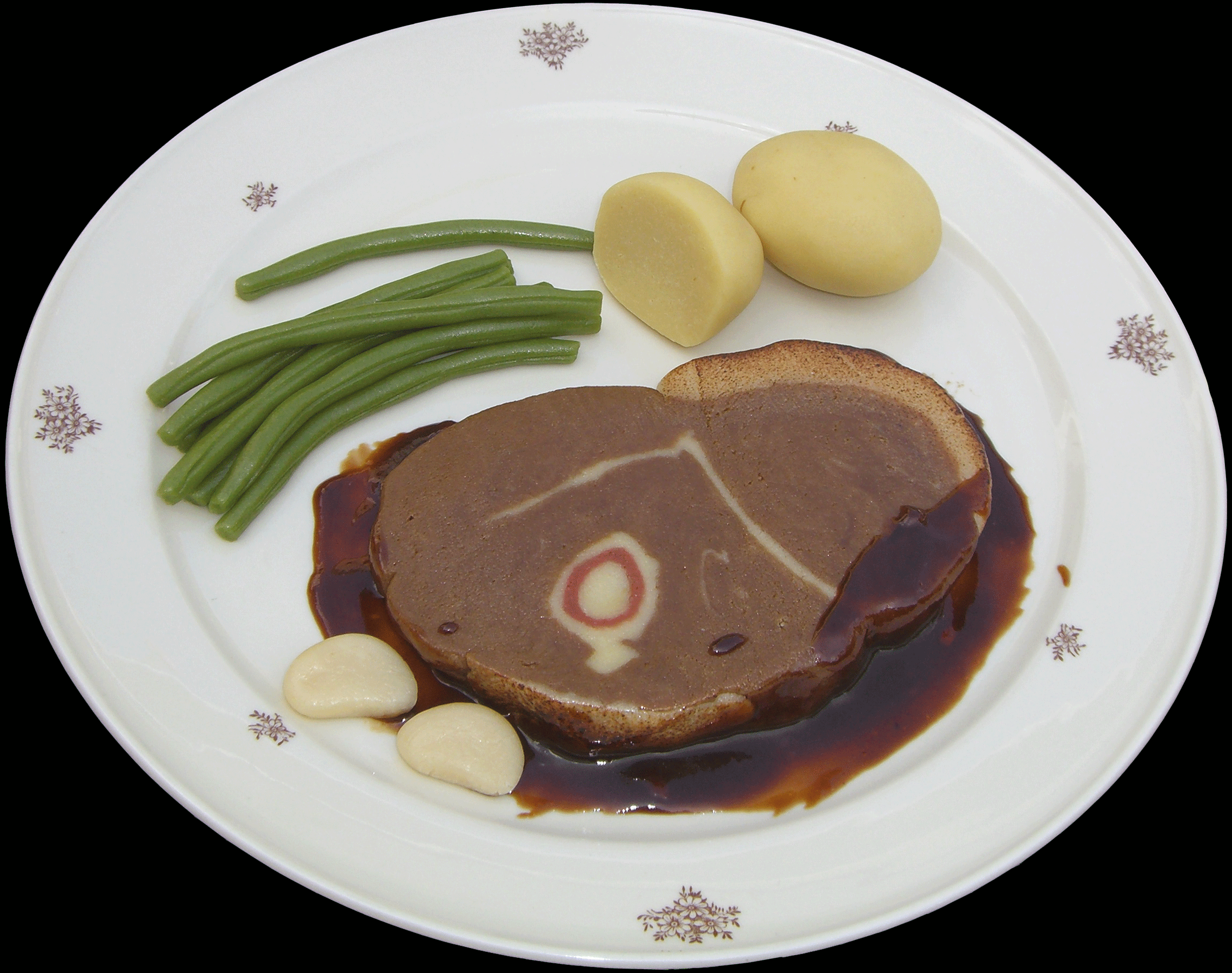 Verblüffen Sie Ihre Gäste. Ein täuschendechter Gänsebraten mit Rotkohl, Klösen und Bratensoße in Originalgröße!
