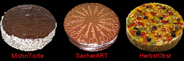 Hier sehen Sie einen Auszug unserer über 80 verschiedenen Torten.