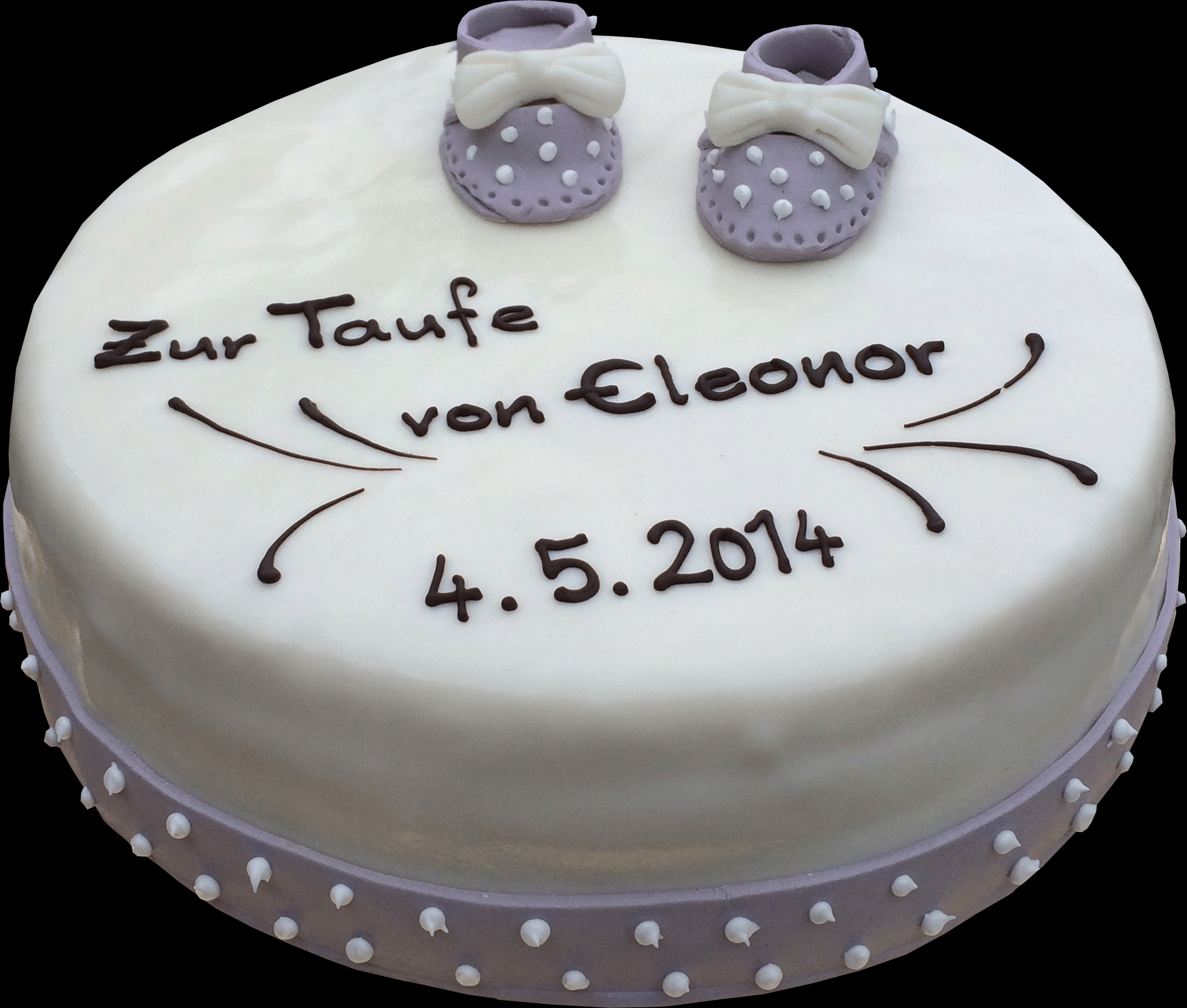Torte zur Taufe in verschiedenen Formen und Farben und Geschmäckern