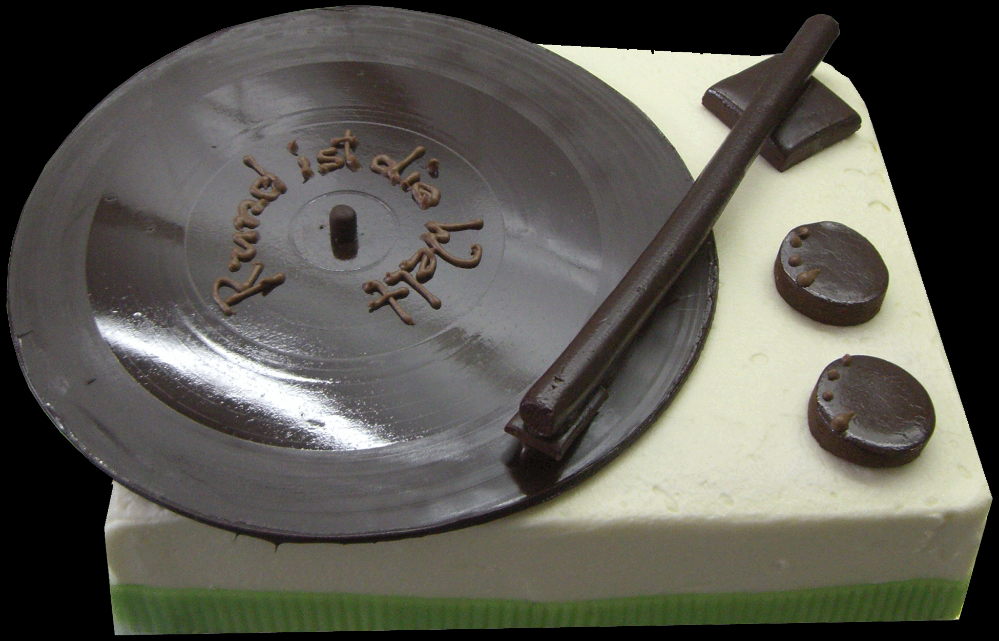Die Schallplatte in Originalgröße aus Schokolade - versuchen Sie sie abzuspielen.